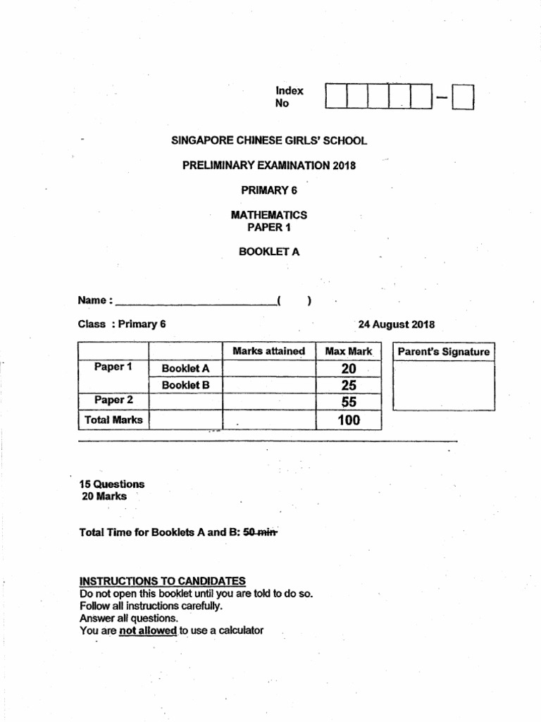 P6 Maths 2018 Sa2 Singapore Chinese Girls Exam Paper Pdf